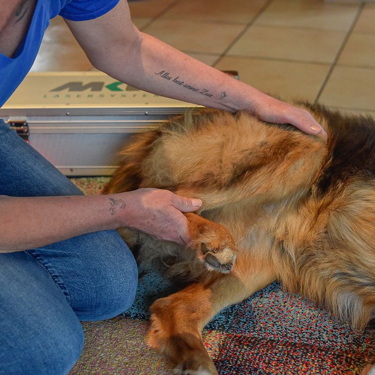 Die Tierphysiotherapie hat die Aufgabe, physisch kranken Tieren wieder zu mehr Beweglichkeit und damit zu mehr Lebensfreude zu verhelfen. Schmerzfreiheit und Mobilität nach überstandener Krankheit oder Operation, im Alter oder auch als Prophylaxe für ein langes gesundes Tierleben ist das Ziel der Behandlung. Die Massage spielt dabei eine wichtige Rolle, wenn es darum geht Schmerzen zu lindern, Verspannungen zu lockern und schlaffe Muskulatur anzuregen.